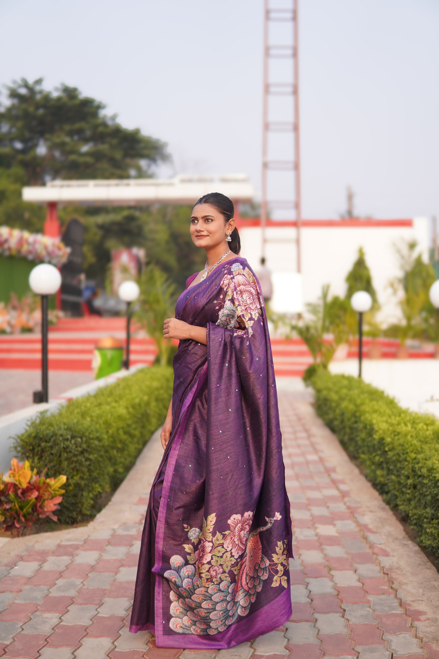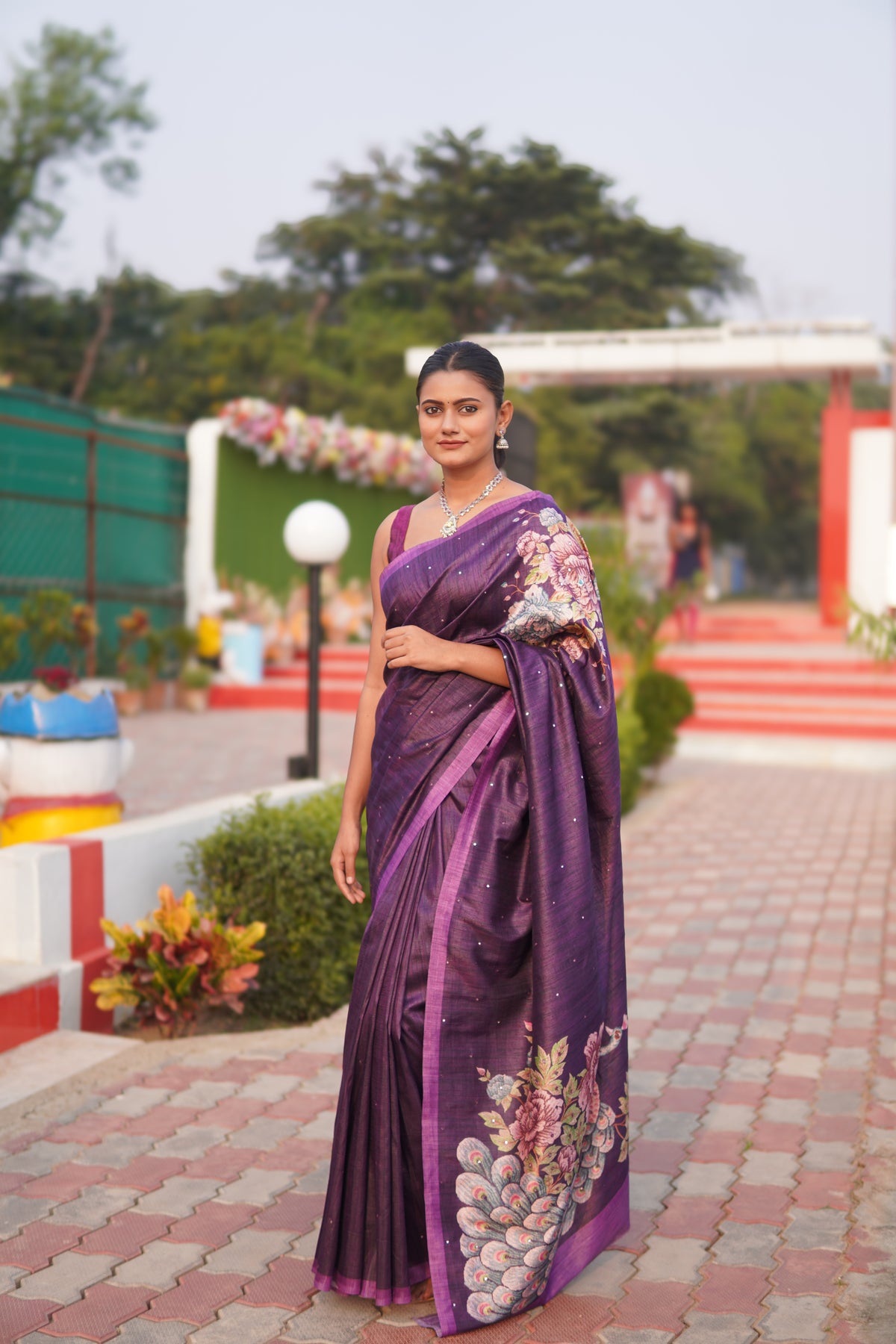 Tussar silk exudes timeless grace, while the delicately contrasted border introduces a refined touch of elegance. The soft sheen and breathable texture make this saree an ideal choice for festive gatherings, cultural celebrations, or graceful daytime occasions.
