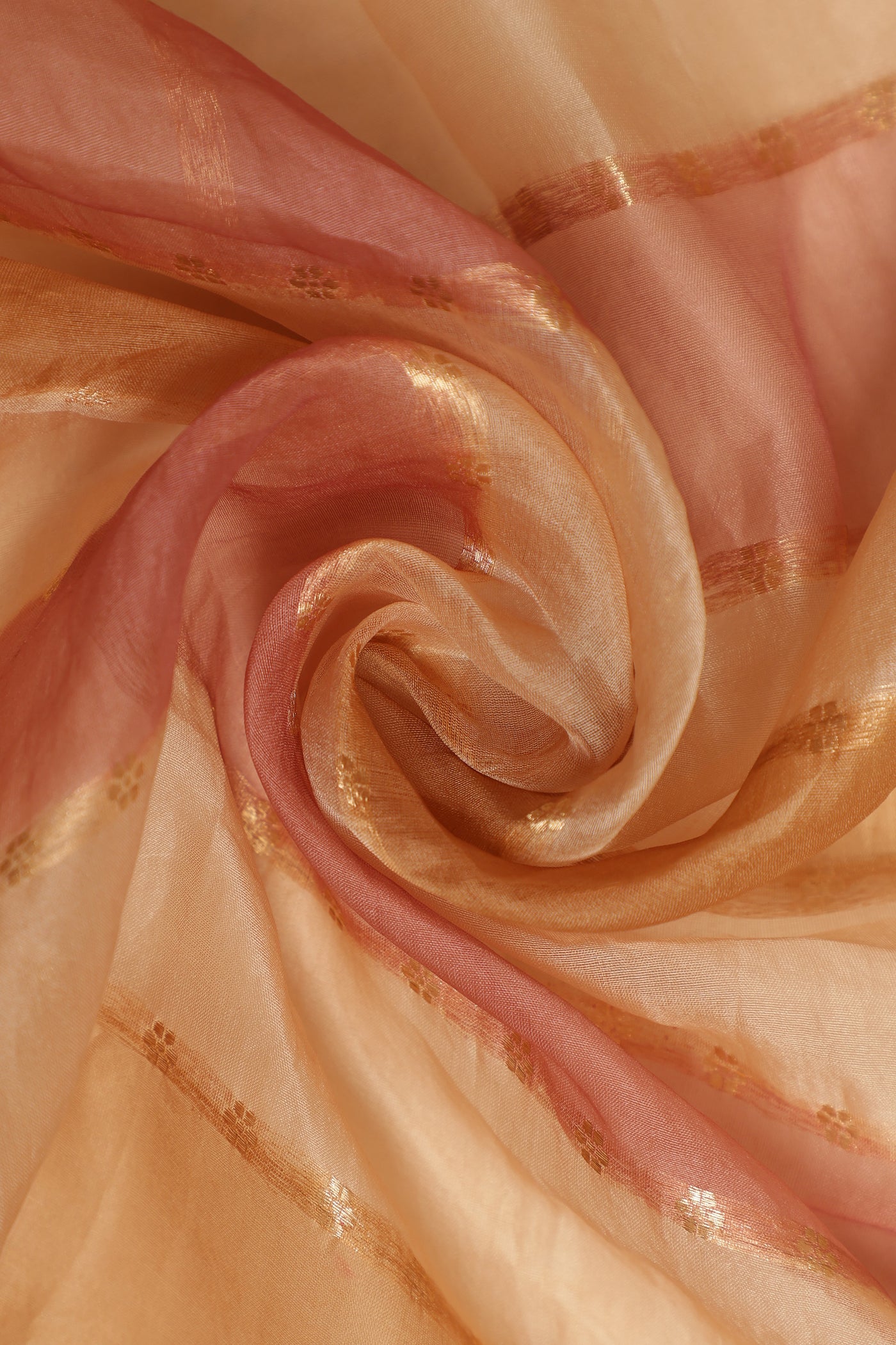 Add a touch of vibrant elegance to your wardrobe with this exquisite Pure Silk Banarasi Organza Rangkat Saree. Woven from premium quality organza silk, the saree showcases the traditional Banarasi weaving artistry blended with contemporary flair. The hallmark of the Rangkat technique is evident in its beautiful, multicolored stripes and intricate transitions of pastel hues, which flow gracefully across the sheer organza base.